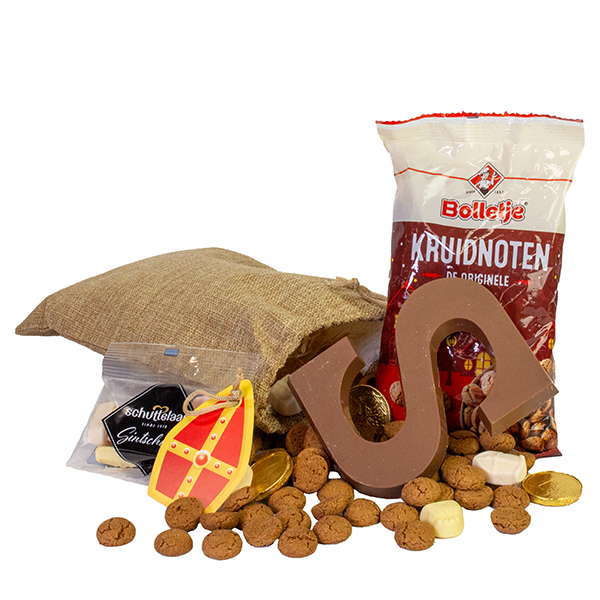 Inhoud | ca. 200 gram Bolletje kruidnoten, 50 gram schuimpjes, chocolade munten in een netje 50 gram en een grote chocoladeletter van 135 gram (UTZ certified) |