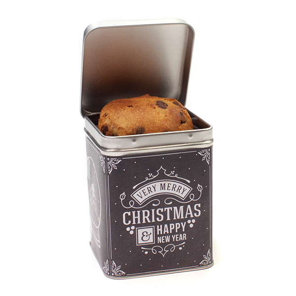 Een prachtig vierkant blik gevuld met een echte kerstlekkernij. Daarnaast kan je het blik ook nog voorzien van een wikkel naar eigen ontwerp.